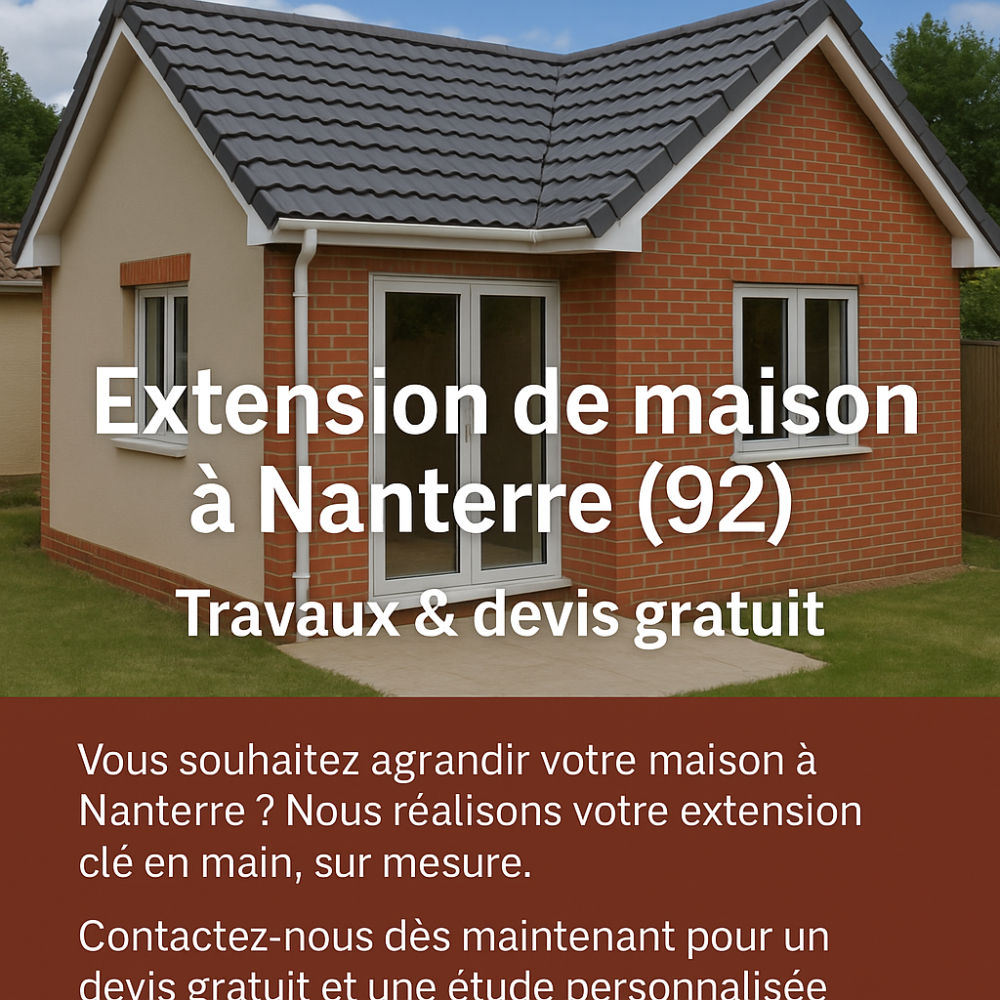 Vous souhaitant une agréable visite, si vous avez besoin d'un complément d'information concernant votre Extension de maison à Nanterre (92) : prenez contact dès à présent.