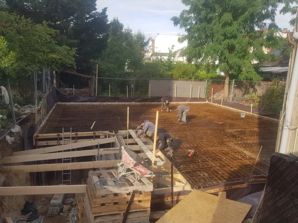 Sur ce chantier à Meudon, nos équipes ont assuré la réalisation complète d’un demi sous-sol, comprenant le terrassement, la préparation du hérisson, le ferraillage et le coulage de la dalle en béton armé.