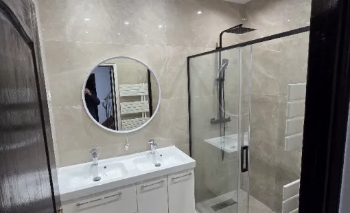 - Rénovation complète de salle de bain : installation et raccordement des appareils sanitaires