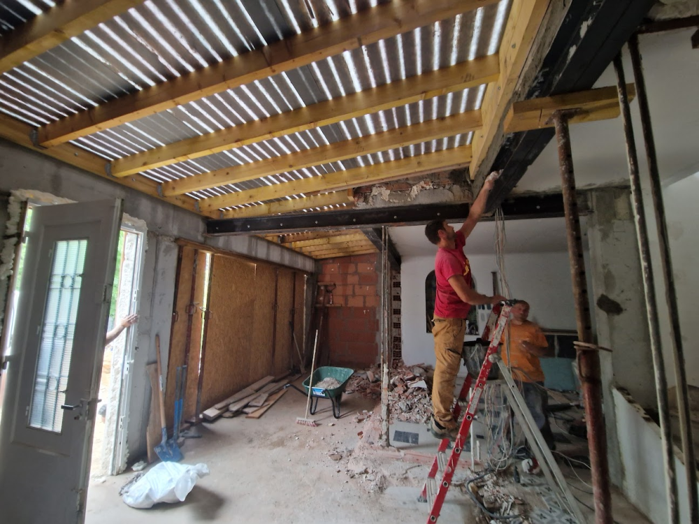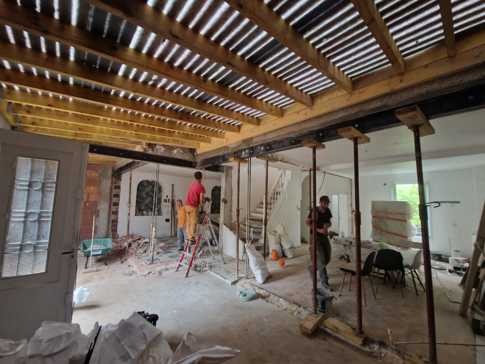 Pose d’IPN (poutre métallique) ou poutres béton pour reprendre les charges.
