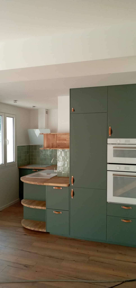 Installation de nouveaux meubles, plans de travail et électroménagers.