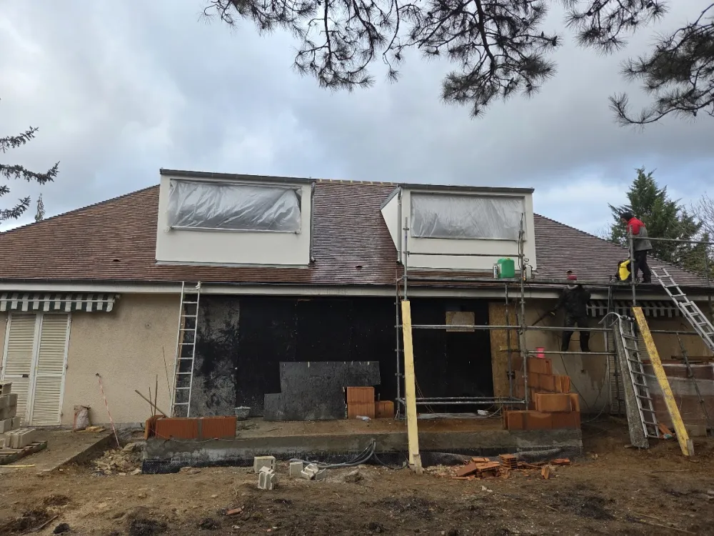 Ce projet d’extension de maison à Saint-Cloud (92) s’inscrit dans une rénovation globale de l’habitation. Les travaux ont débuté par la création des ouvertures, la préparation des structures existantes et le nettoyage complet de la toiture, afin d’assurer une base saine avant l’agrandissement.